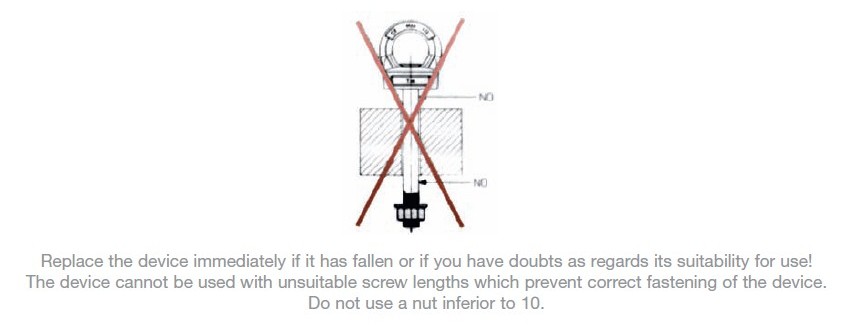 Dispozitivul nu poate fi utilizat cu lungimi de surub nepotrivite care impiedica fixarea corecta a dispozitivului.