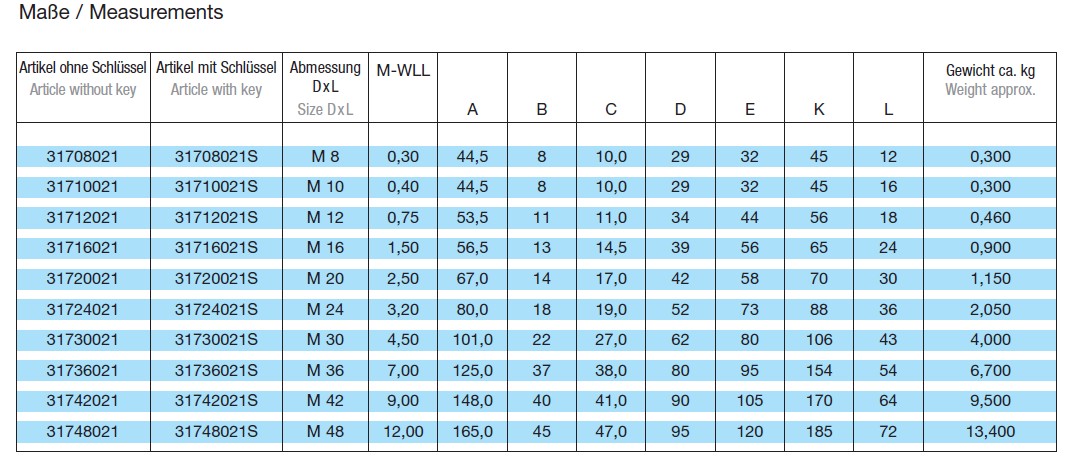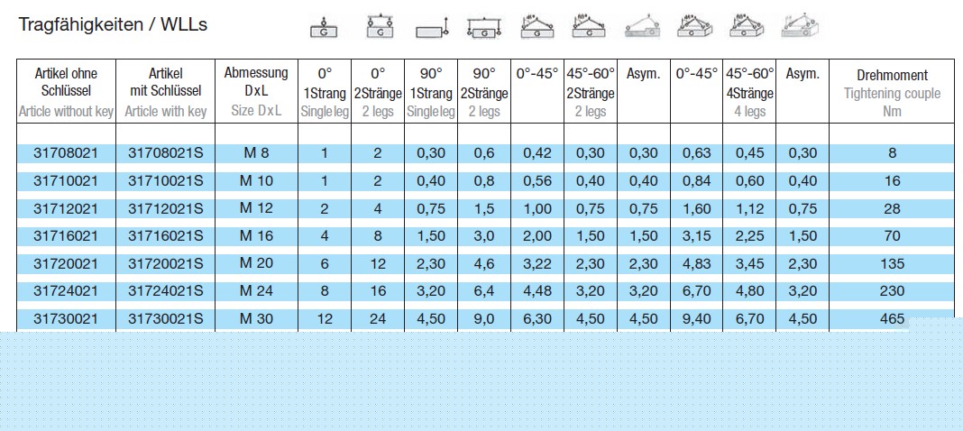 - Suitable for safe lifting in compliance with the machinery directive 2006/42/EC